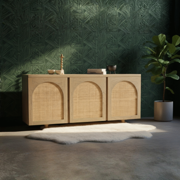 Modern Minimalist Teak & Rattan Sideboard – Handmade Indonesian Furniture